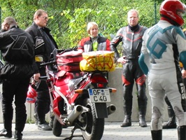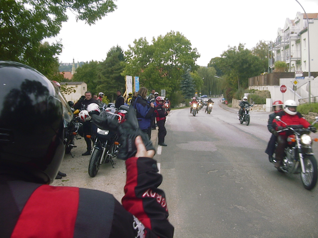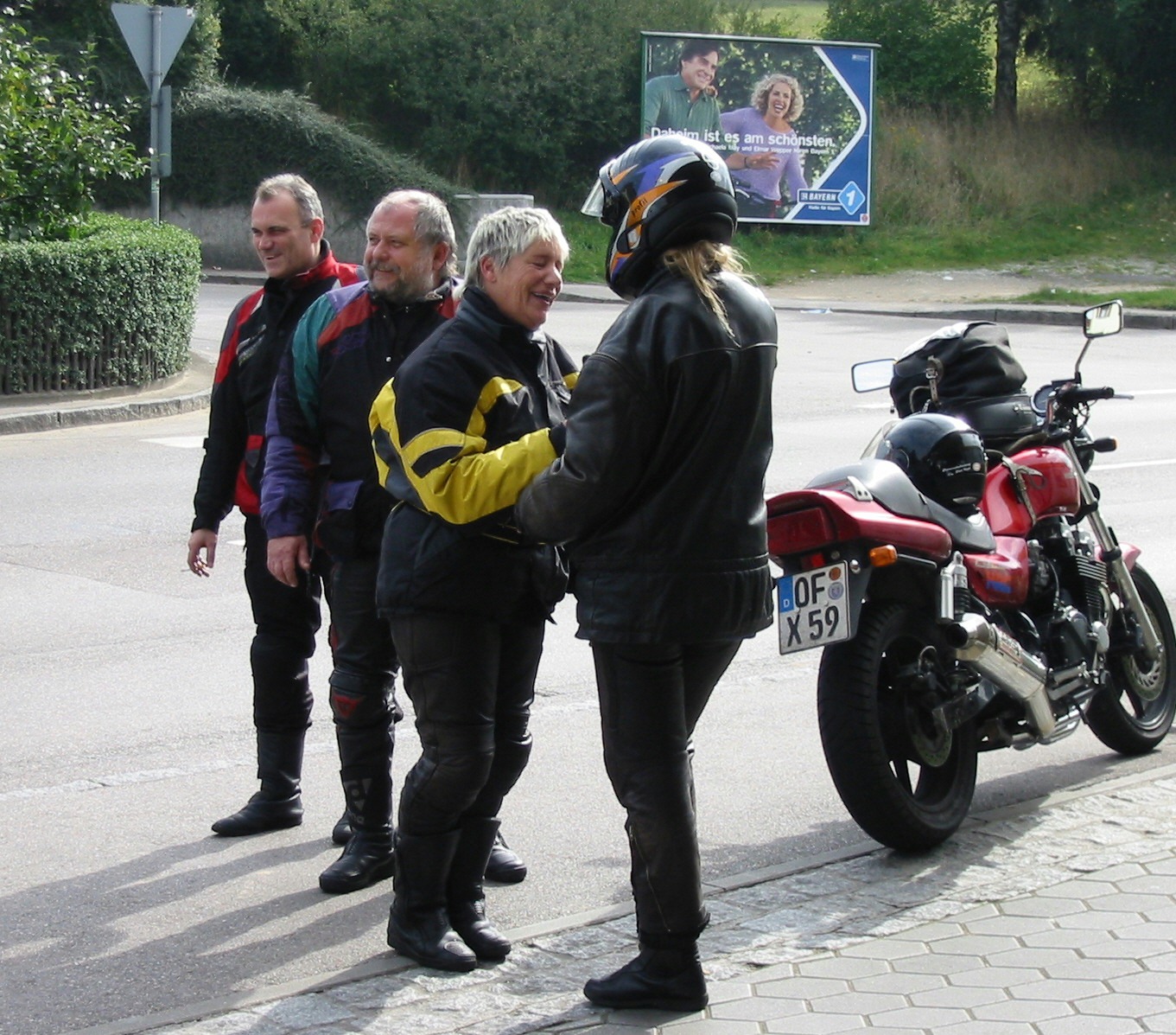 Auf dieser Strecke mussten wir mehrfach pausieren, da sich die Sozia von Gudrun den letzen Abend (Ramazotti) nochmals durch den Kopf gehen ließ und nachmessen musste, was sie so getrunken hatte. In Gunzenhausen standen dann Kerstin die | |