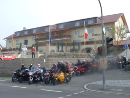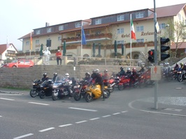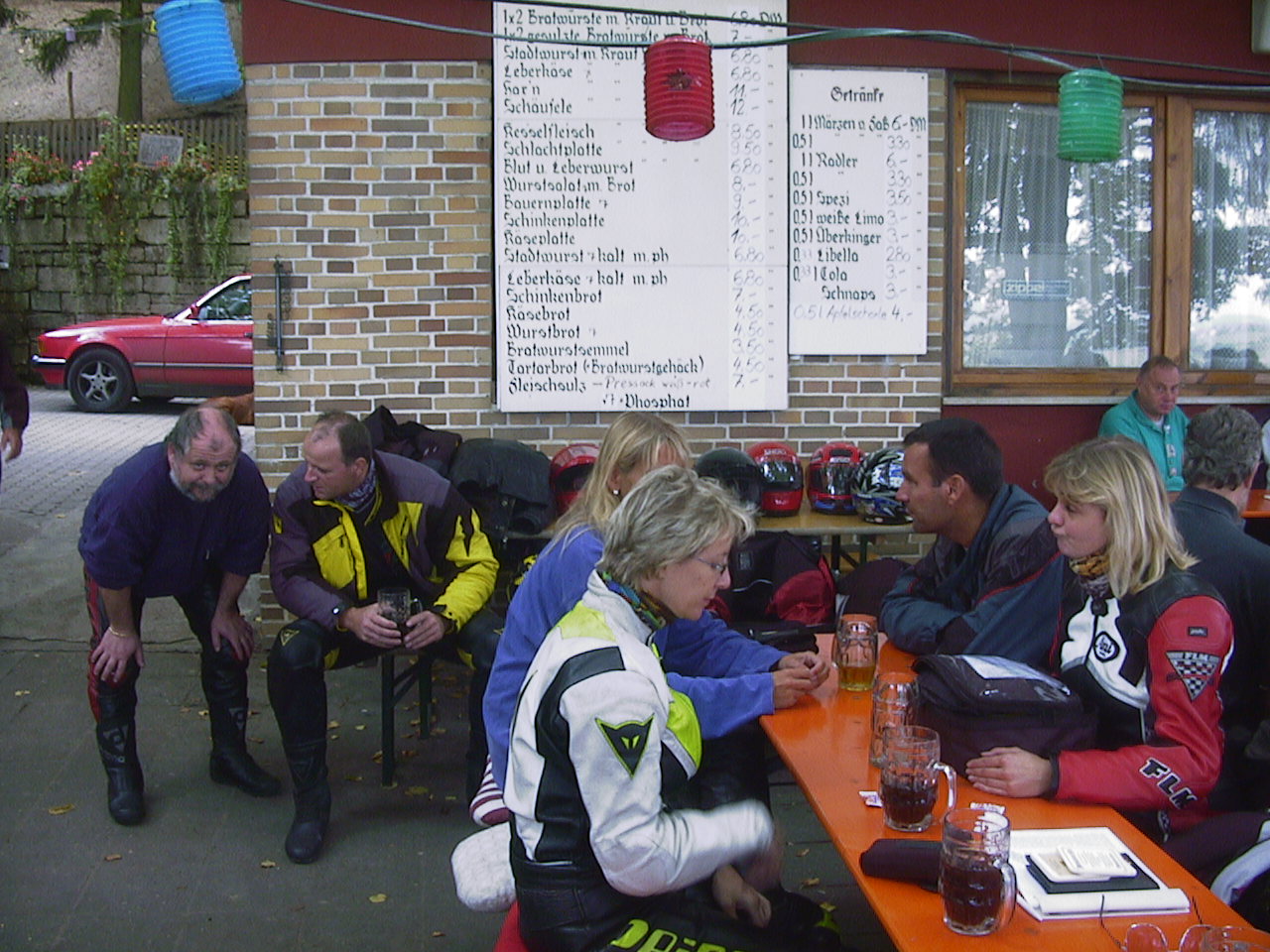 | Mit frischen Kräften ging es dann über Bad Mergentheim (B290), Blaufelden, Rot am See, bis kurz vor Crailsheim, um dann nach links nach Feuchtwangen und über die B25 nach Dinkelsbühl. Weiter über Wassertrüdingen, Ostheim, Heidheim nach Treuchtlingen zur Mittagspause in den „Wettelsheimer Kellern“ |
