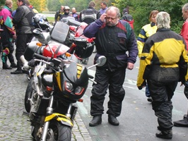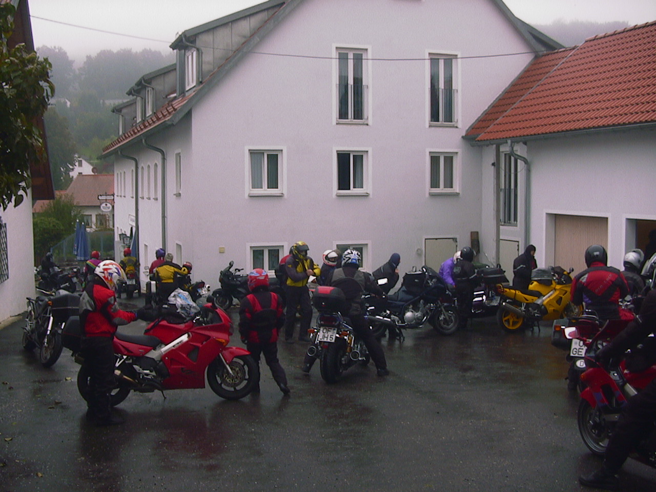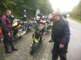 Ein herrliches goldenes Oktoberwochenende war angekündigt, aber bei 10°C war es recht frisch. Weiter ging es über Lauda (B290) bis Edelfingen. Im Landgasthof „Edelfinger Hof“ wartete bereits ein reichhaltig gedeckter Frühstückstisch auf uns. |