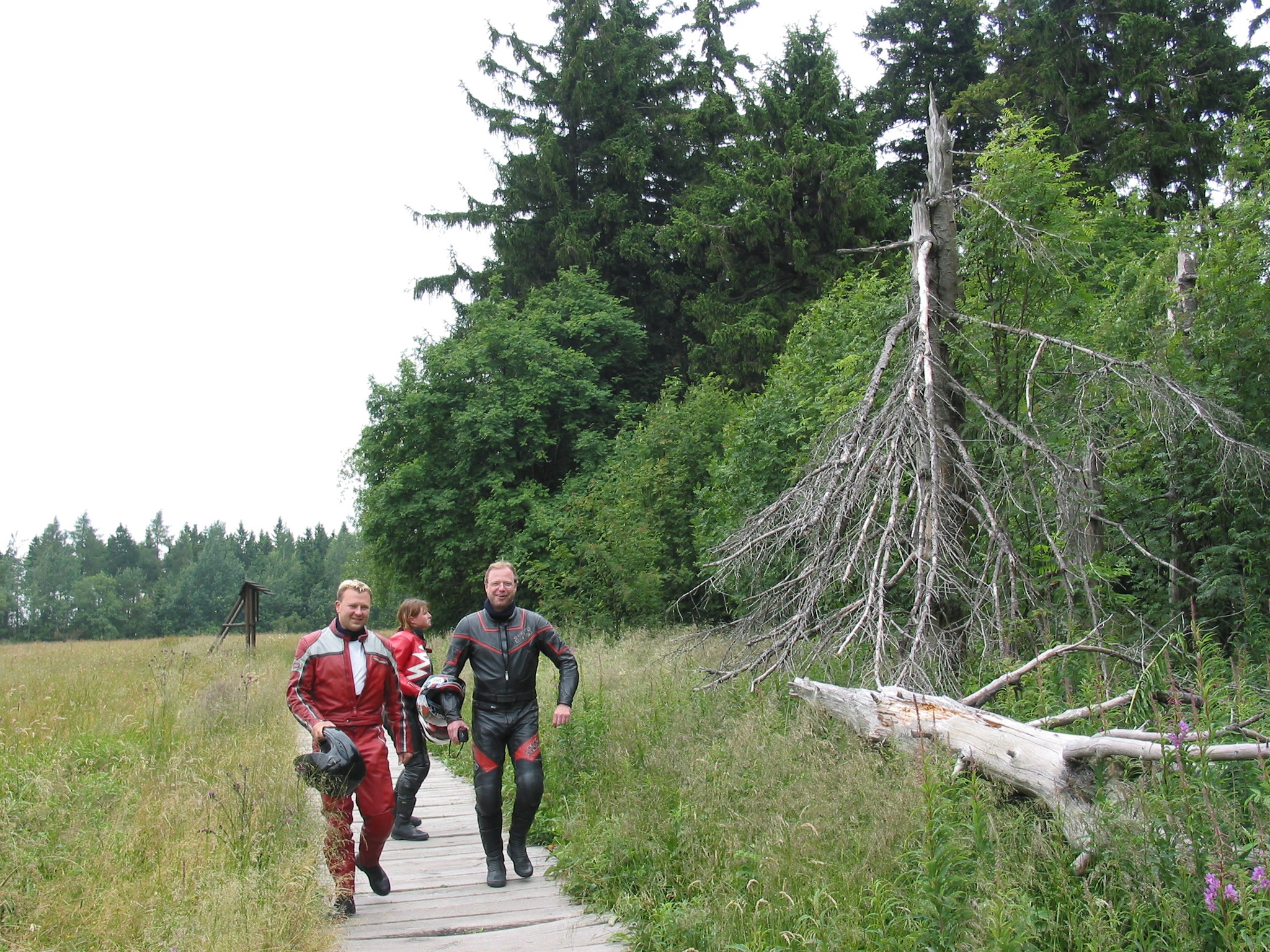 Oberbernhards - Dornbach - Liebhards - Eckweisbach - Hilders - Frankenheim - Birx und dann links zum "schwarzen Moor"Hier sollte es also sein wo wir unserem Namen gerecht werden sollten..... W a n d e r n !!!! Ich muss hinzufügen - es war sehr heiss und in unseren Klamotten kam man schnell ins schwitzen. | |