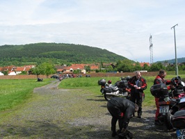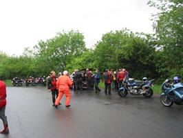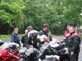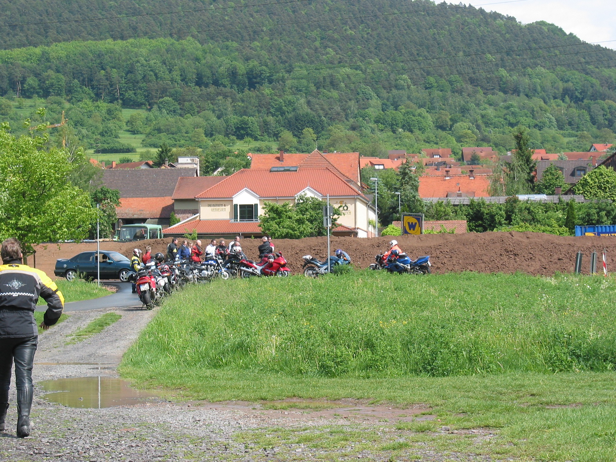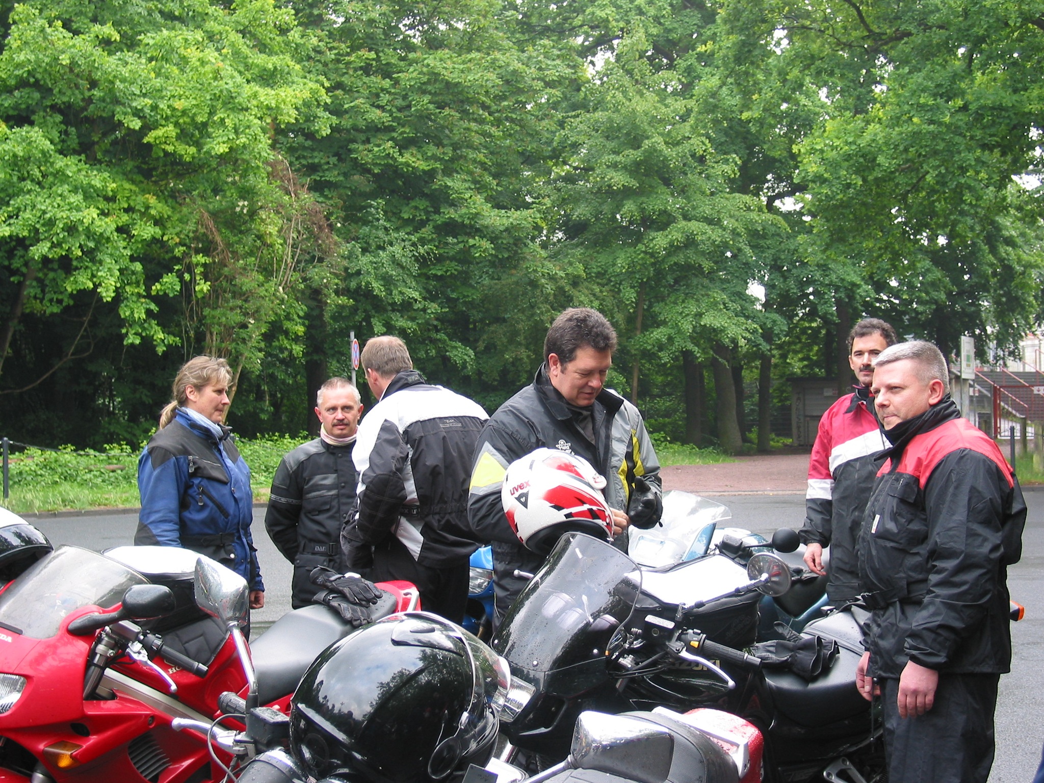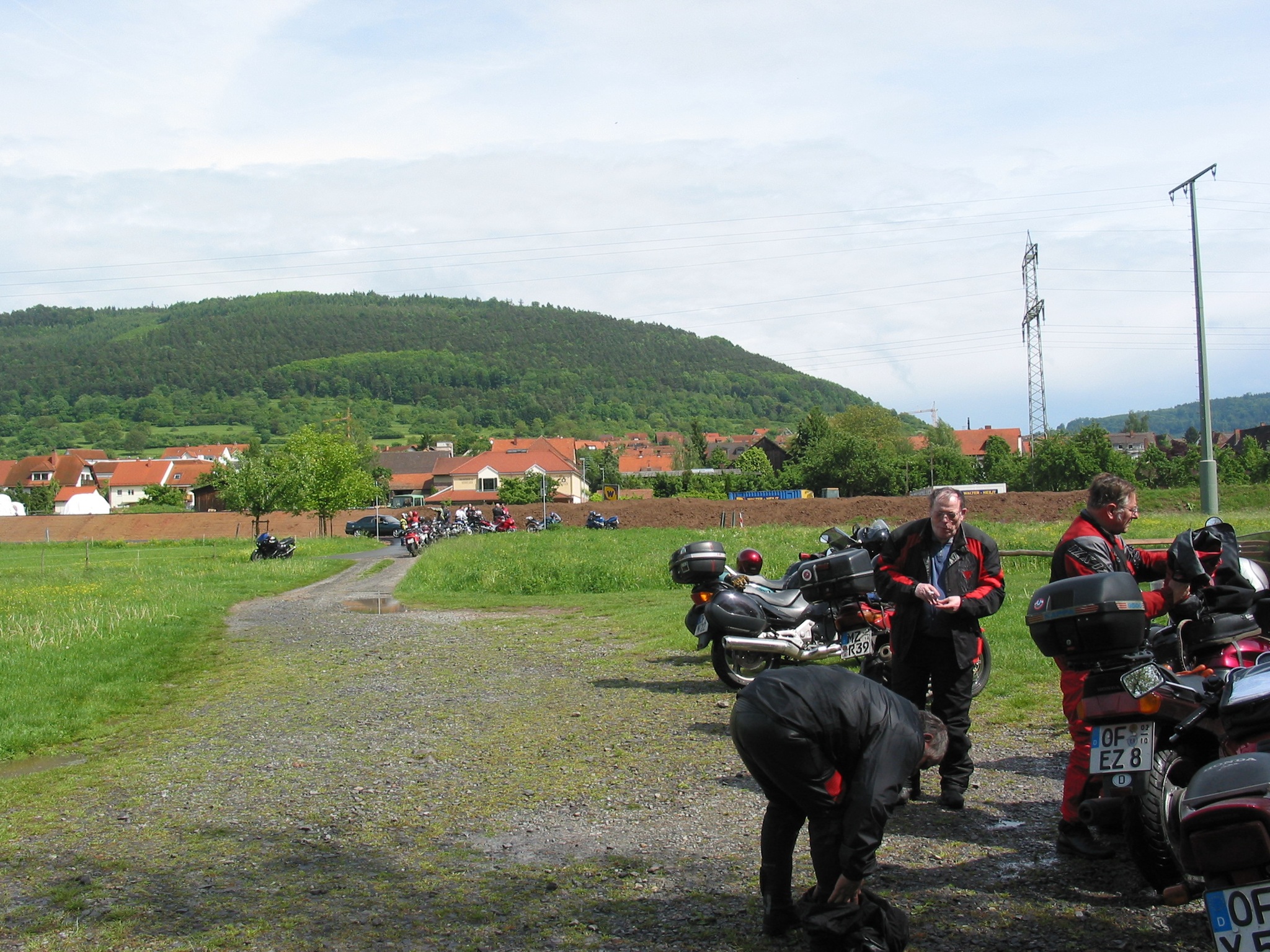 Trotzdem kamen ca. 20 Teilnehmer zum Treffpunkt und waren zuversichtlich, dass Petrus ein Nachsehen für Motorradbegeisterte hat.