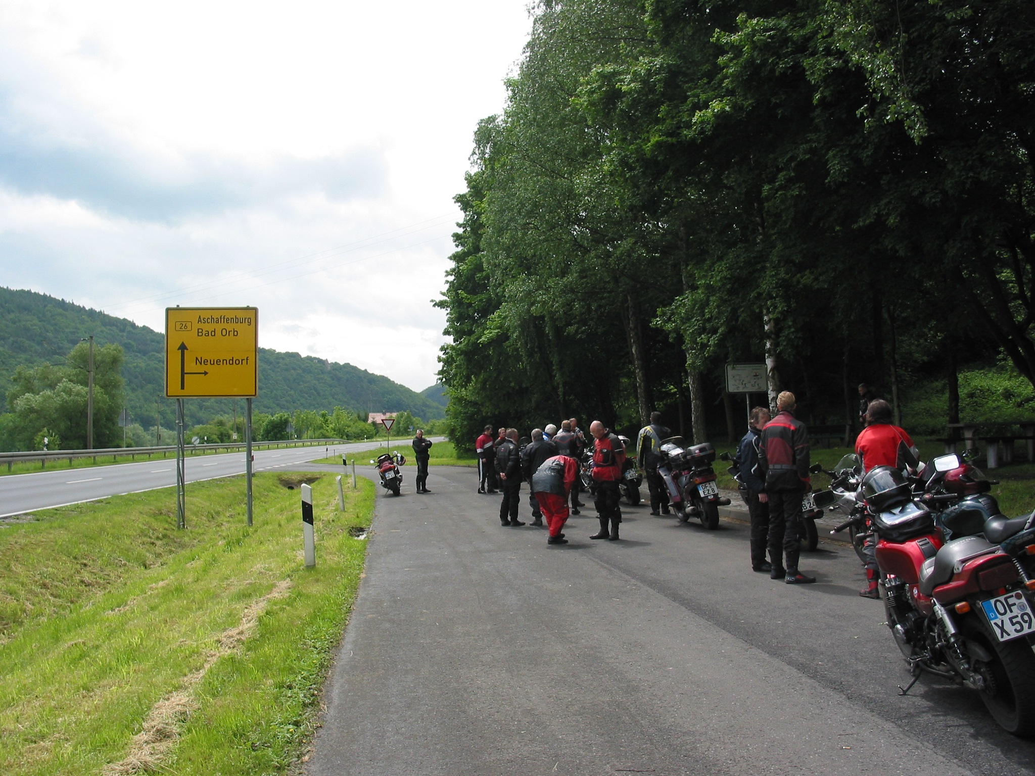 Wir fuhren von Offenbach über die B448 - 43a Hanau - Rodenbach - nach Niederrodenbach. Dort hatten wir eine kleine Pause, da auf regennasser Fahrbahn es durch verkehrsbedingtes Bremsen zu einem kleinen Ausrutscher kam. Ein paar Kratzer und ein defekter Blinker aber glücklicherweise keine Verletzung. So ging es weiter über Albstadt - Horbach - Geiselbach - Westengrund -