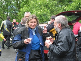 Auf einem Parkplatz wartete Uwe´s Schwester nebst Familie bereits auf uns. Es gab mal wieder den einzigartig guten und besten Streuselkuchen mit warmen Kaffee ....... und es war trocken - kein Regentropfen traute sich diese Pause zu stören.
