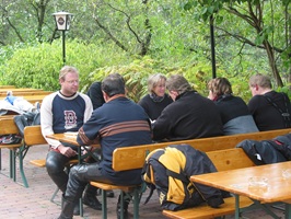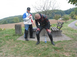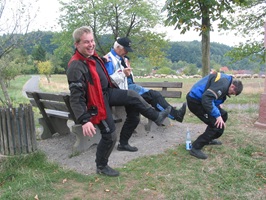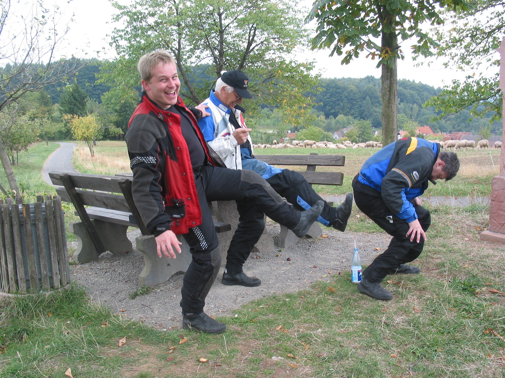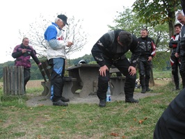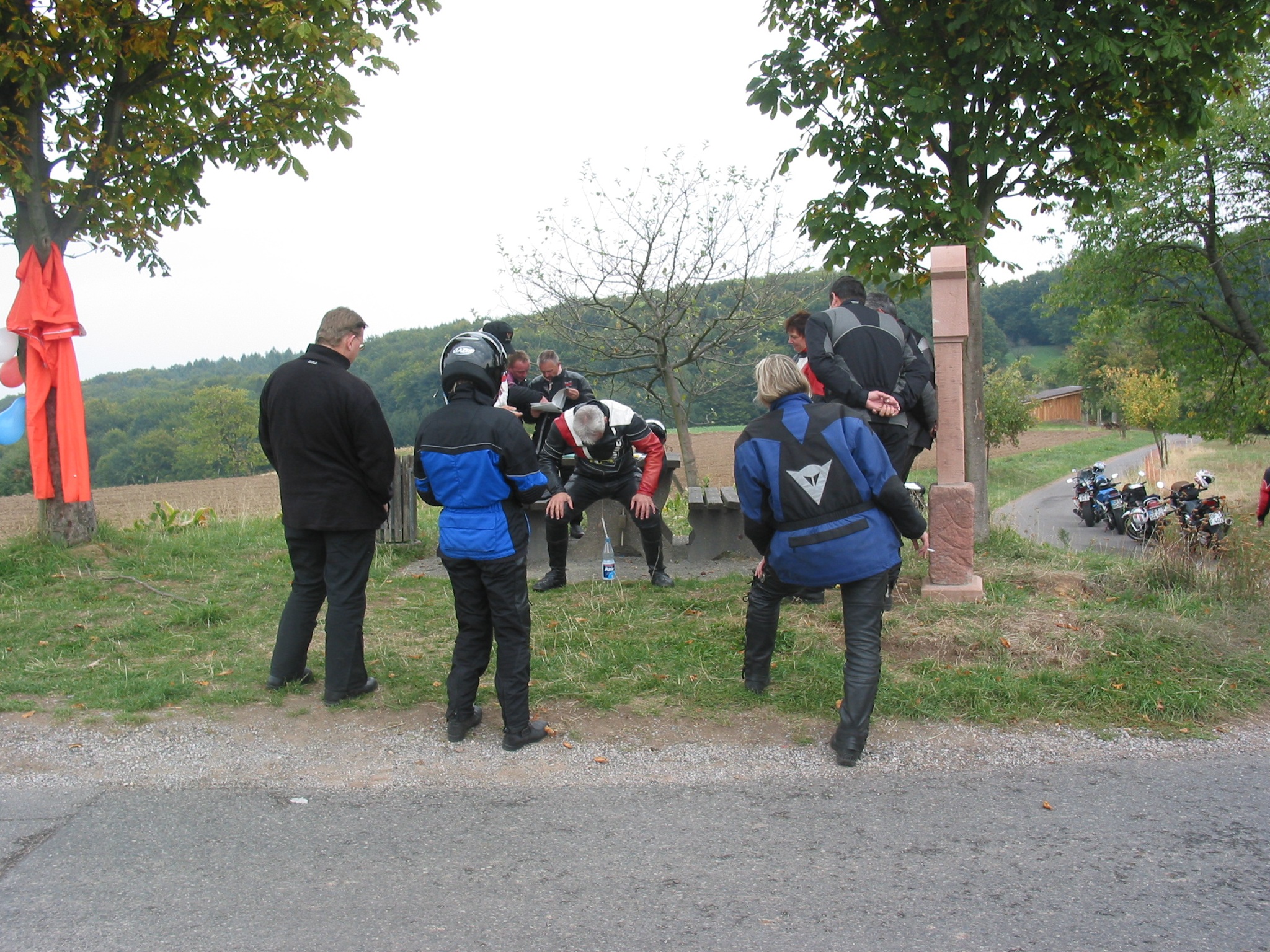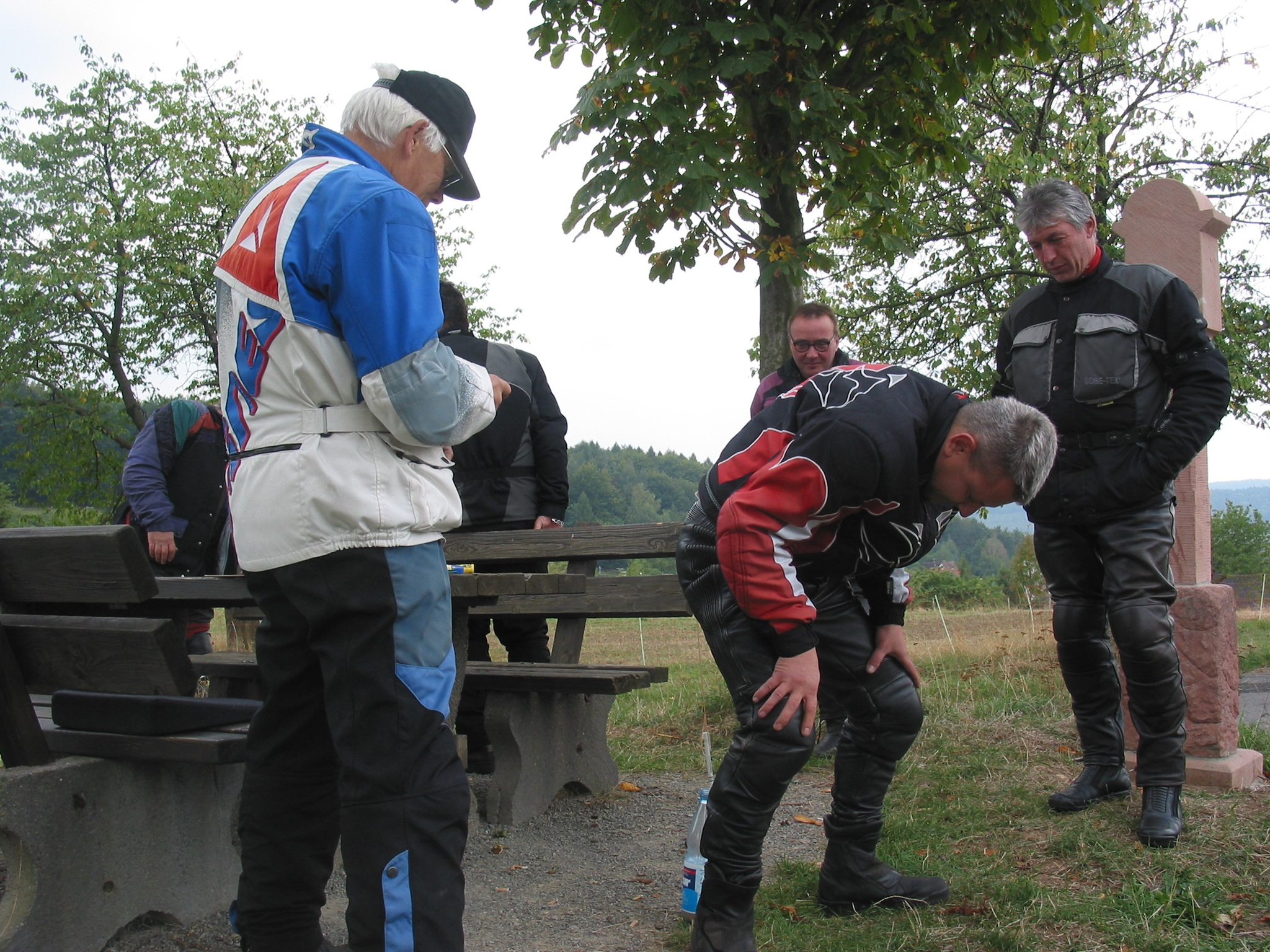 schon eine Zeit zurück und man wunderte sich, was da heute so alles für "dummes Zeug" gefragt wird. Diese drei Fragebogen zu beantworten brachte so manchen ins Schwitzen.Aber wir hatten alle viel zu lachen und es war ein schöner Tag. Nur zum Abschluss hatten wir noch eine kleine Panne, da Werner eine Schraube im Reifen hatte, welche wir entfernten und den Reifen flicken mussten.