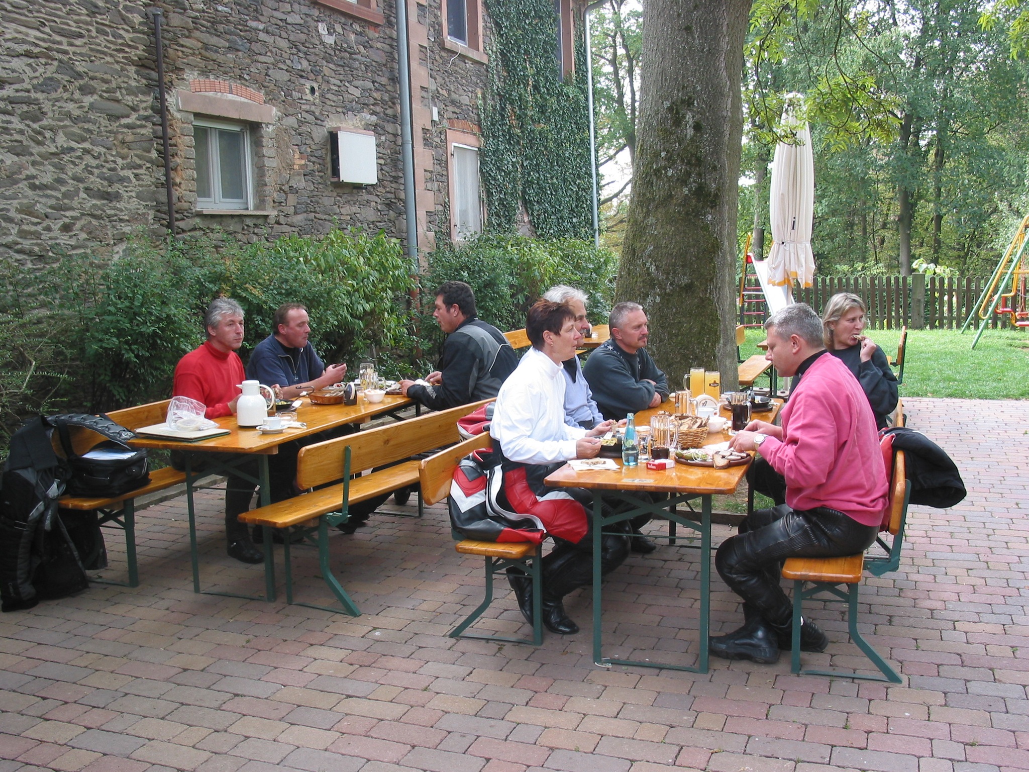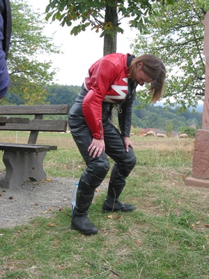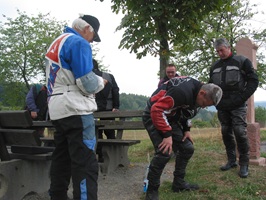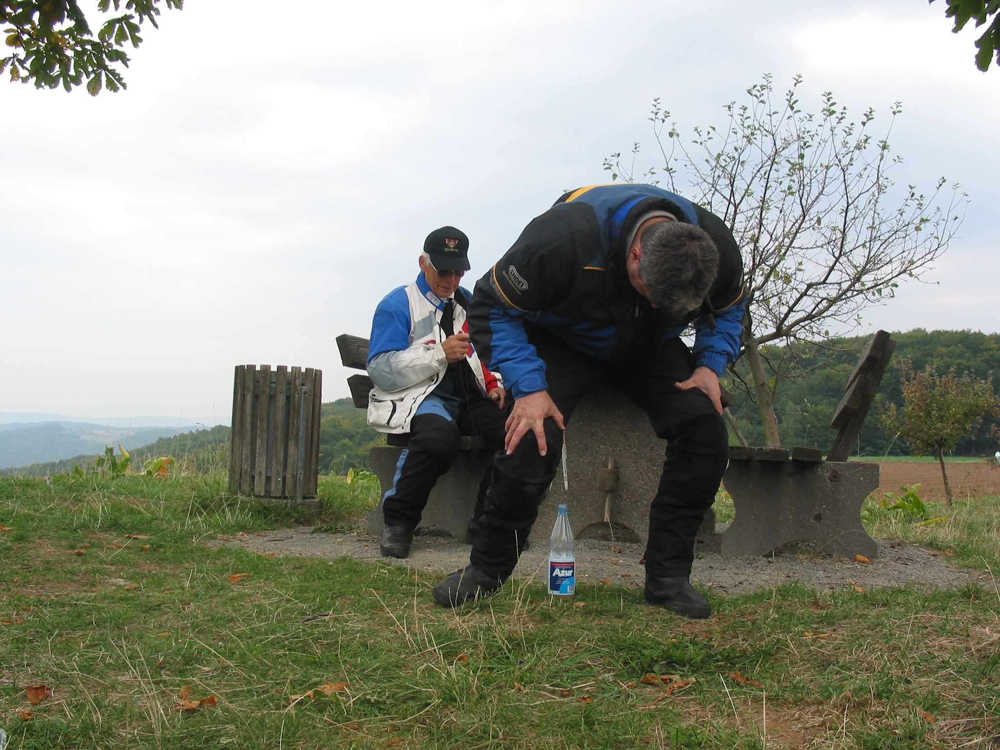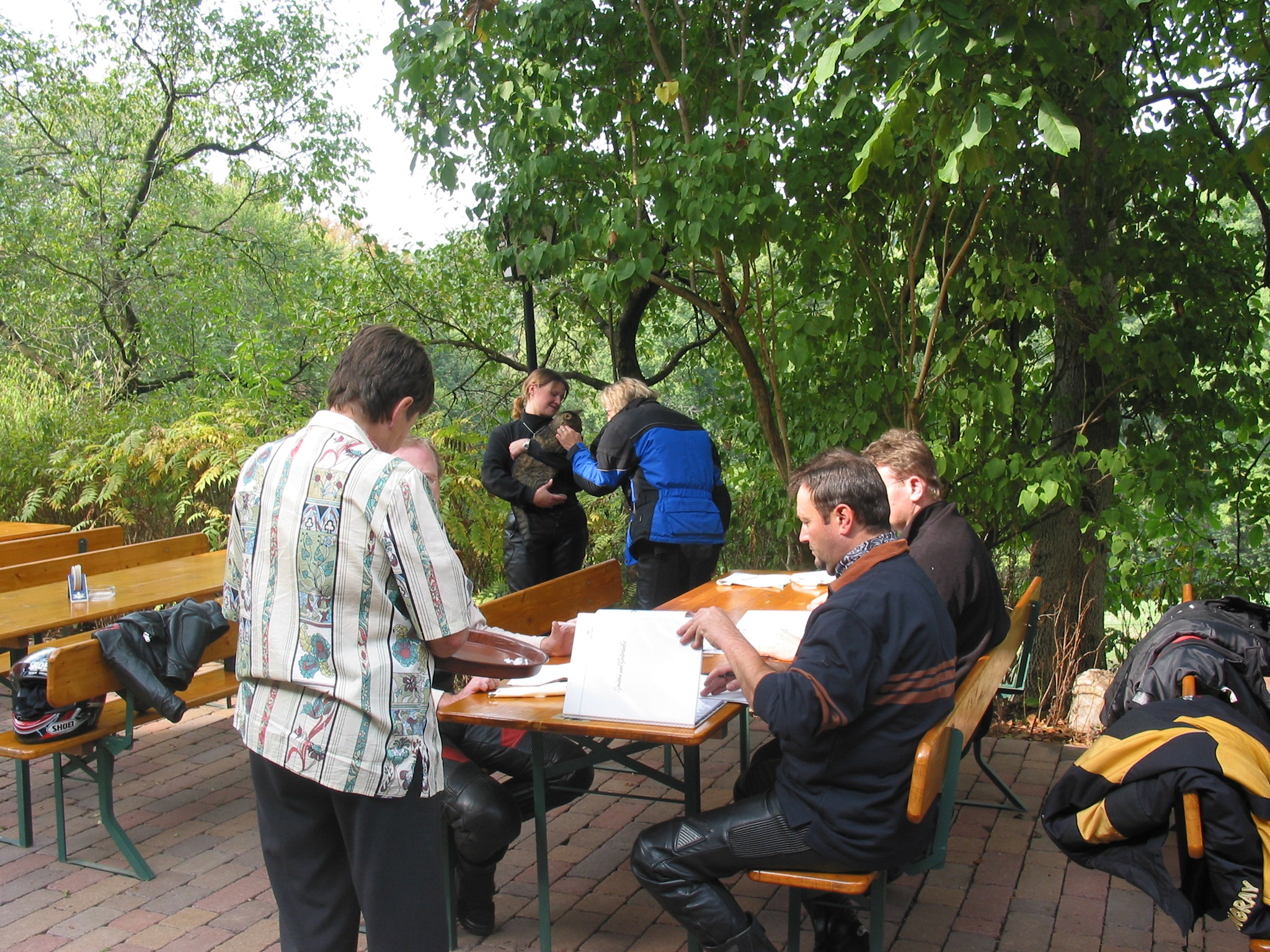 schon eine Zeit zurück und man wunderte sich, was da heute so alles für "dummes Zeug" gefragt wird. Diese drei Fragebogen zu beantworten brachte so manchen ins Schwitzen.Aber wir hatten alle viel zu lachen und es war ein schöner Tag. Nur zum Abschluss hatten wir noch eine kleine Panne, da Werner eine Schraube im Reifen hatte, welche wir entfernten und den Reifen flicken mussten.