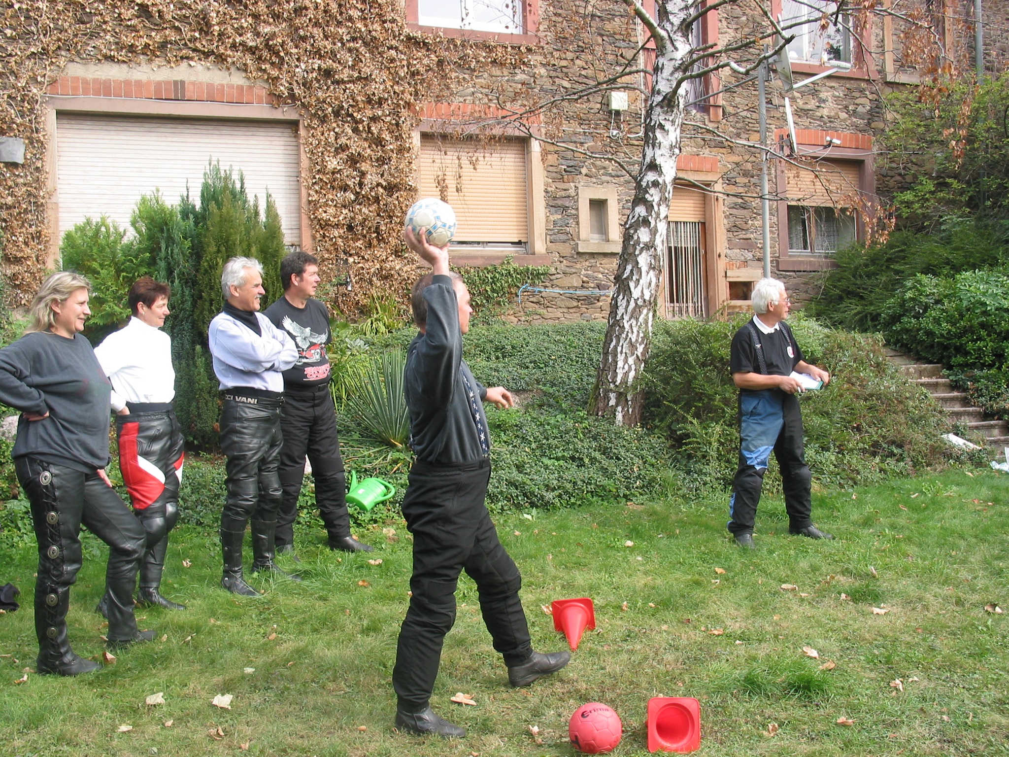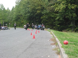 Nachdem jeder einen Geschicklichkeitslauf auf Zeit um Lübecker Hüte gemacht hatte und ausser Puste war, gab es noch eine Bremsübung zu bewältigen, wo das Hinterrad dann auf einem vorgegebenen Punkt zum Stehen kommen sollte.