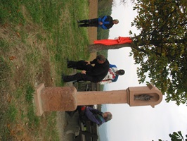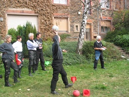 Aber auch dort hatte Lothar eine Geschicklichkeitsspiel aufgebaut. Bälle mussten in die Öffnung einer Torwand geworfen werden. Soweit ich mich erinnere, stellte Dagmar hier alles in den Schatten und traf fast immer.Der Weg führte weiter nach Hofstätten, wo man Tafeln finden und den Namen des Bürgermeisters bist 1978 herausfinden musste