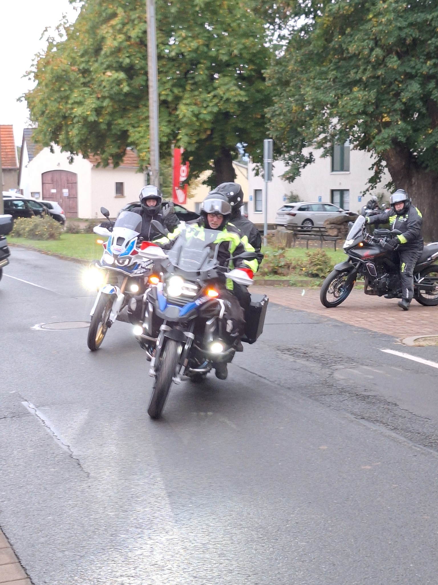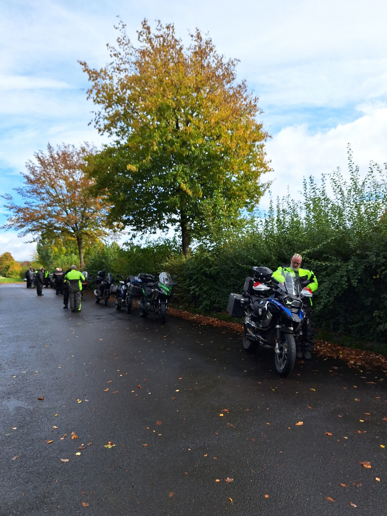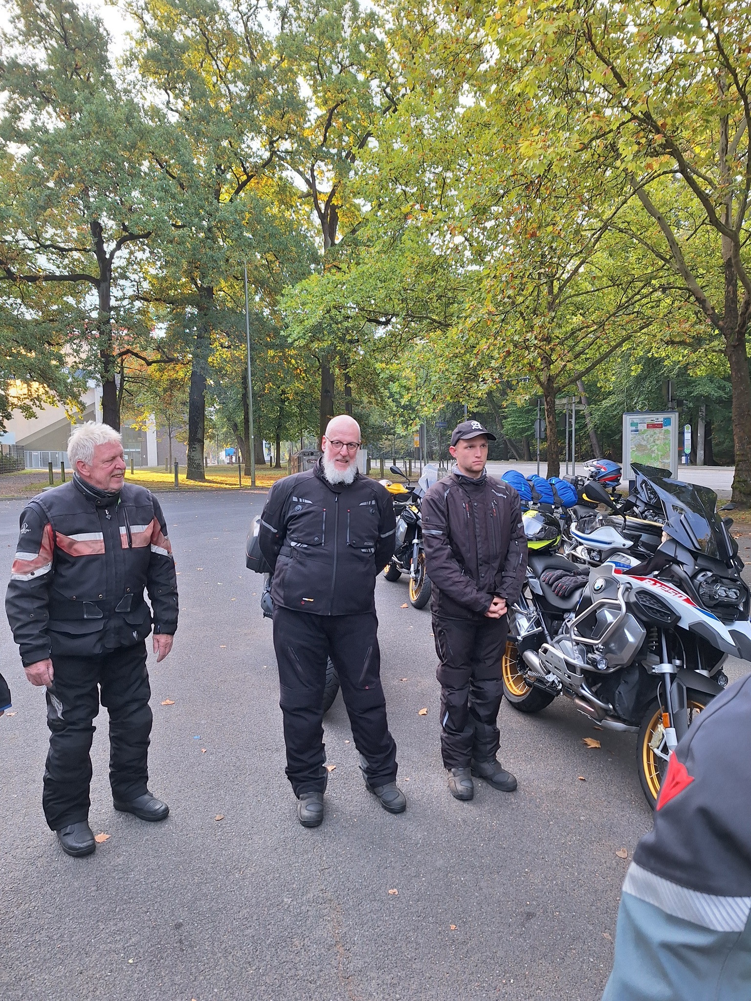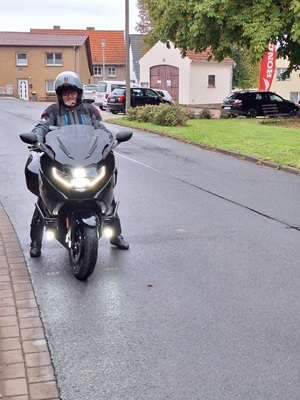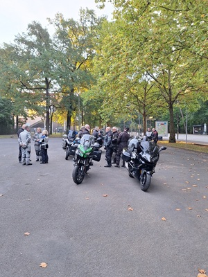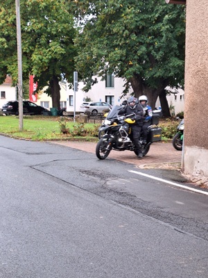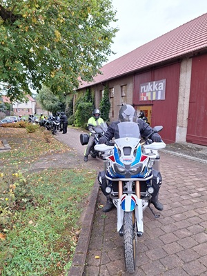 Los ging es wie immer auf dem Parkplatz am OFC Stadion. Wolfgang hatte für uns eine schöne Tour durch den kurvenreichen Vogelsberg, den Kellerwald und den Südharz geplant. Wir waren überwiegend auf kleinen Straßen unterwegs. Die Wetterprognosen waren wieder mal nicht gerade rosig. Aber wir haben die ca. 350 km trockener Achse geschafft. Es war nur ziemlich kühl. Im Hotel angekommen, tranken wir das Garagenbier sogar auf der Terrasse. Allerdings wäre ein Glühwein auch nicht schlecht gewesen. Den Abend ließen wir im warmen Inneren des Hotels bei einem leckeren Abendessen vom Buffett ausklingen. Am Abend und in der Nacht kam dann leider der Regen.
