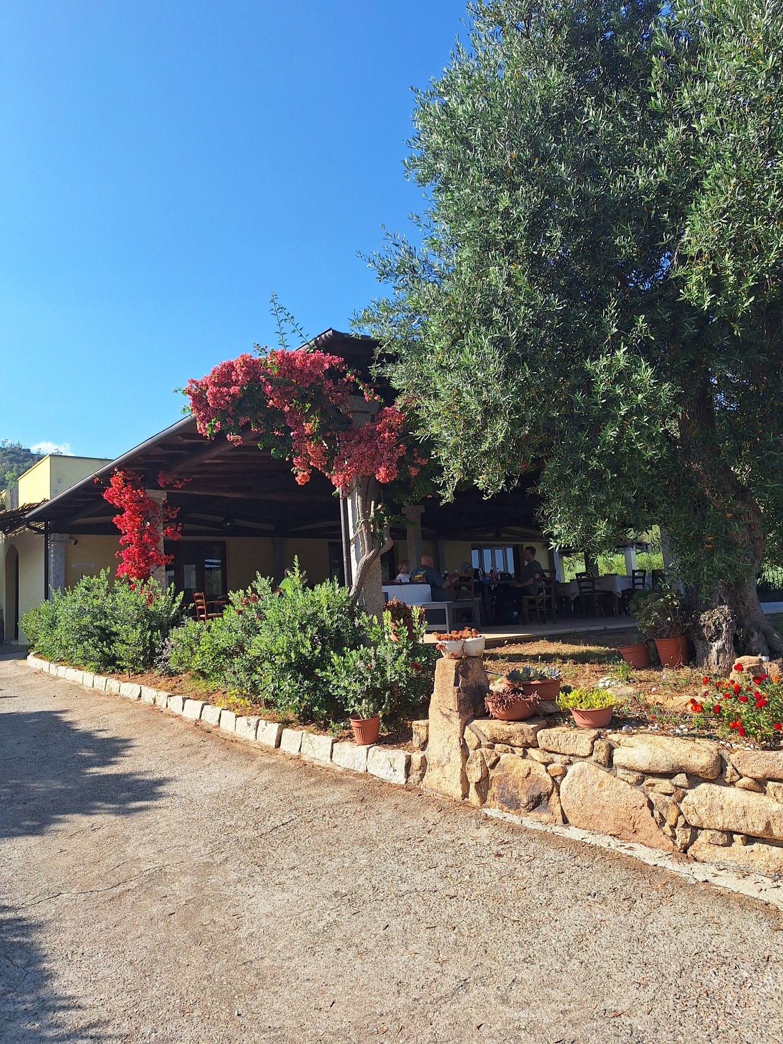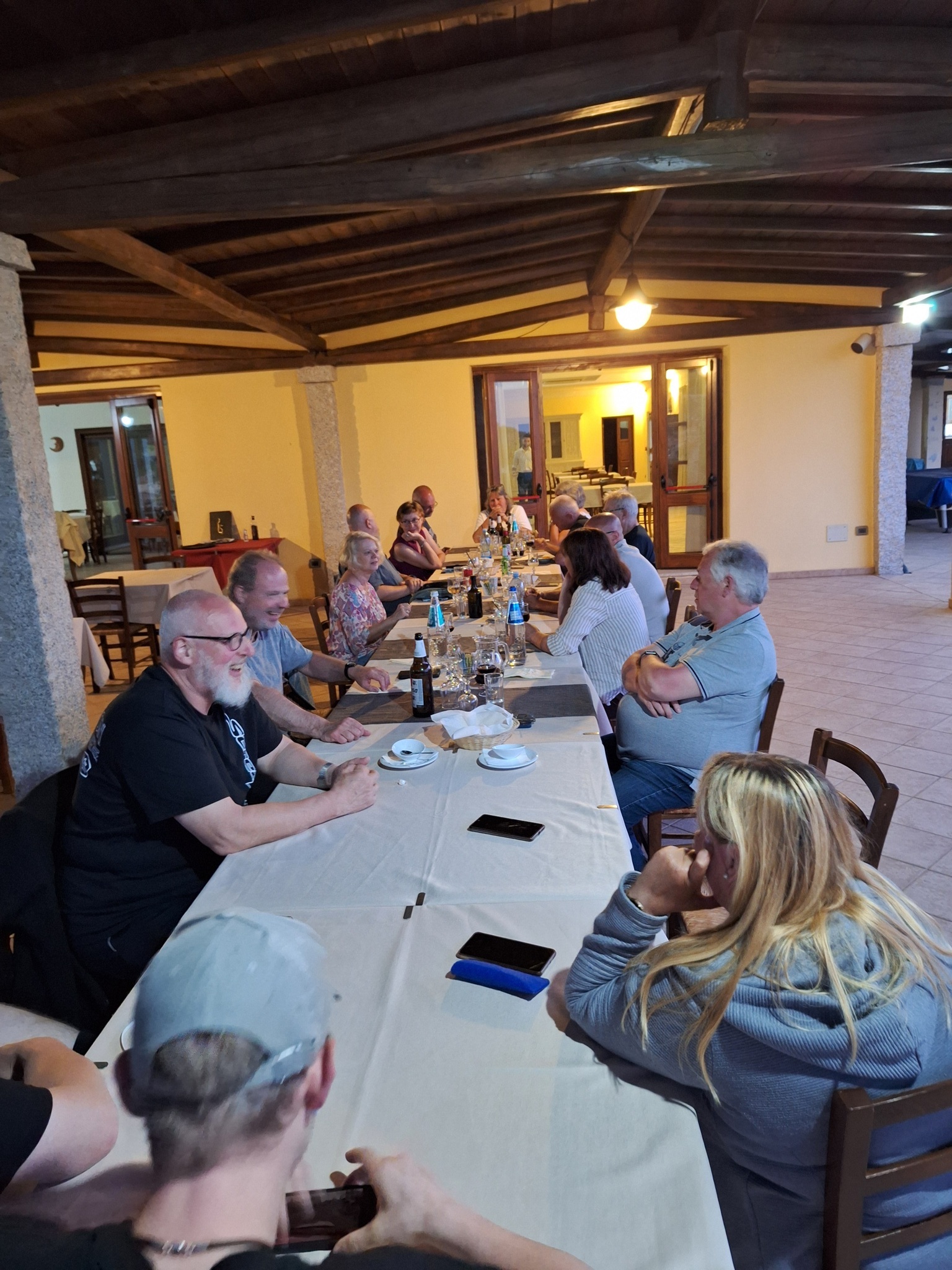 Nach einer Nacht auf See kamen wir am nächsten Morgen so gegen 8.30 Uhr in Sardinien an. Auf der Fähre trafen wir Ko und Dagmar, die mit dem Auto und dem Motorrad auf dem Hänger unterwegs waren. Vom Hafen Genua ging es erstmal nach Olibia. Dort gab es eine Frühstückspause. Gestärkt mit Kaffee, Toast, etc. konnten wir uns dann auf den Weg zu unserem Hotel machen. Alex hatte eine schöne Tour ausgearbeitet und wir kamen so gegen 16.30 Uhr im Hotel an. Bei einem Bierchen warteten wir auf die Verteilung der Zimmer. Das Hotel und das Personal begeisterten uns vom ersten Moment an. Den Abend ließen wir dann bei einem leckeren Essen ausklingen. Später am Abend kamen auch Sabine und Silke an, die geflogen waren. Die Beiden haben sich Sardinien im Leihwagen angeschaut.