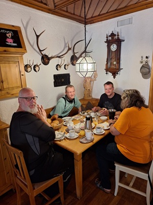 Nach der Überfahrt mit der Fähre ging es dann weiter zur ersten Zwischenübernachtung. Wieder war Alex unser Tourguide. Auf schönen Strecken führte er uns zu unserem Hotel La Roccia am Ponte di Legno. Dort verbrachten wir nochmal einen schönen Abend, bevor es am nächsten Tag in Richtung Deutschland weiterging. Auch hier führte Alex die Tour. In Unterthingau bei Dieter legten wir nochmal eine Zwischenübernachtung ein und verbrachten im Biergarten einen superschönen Abend. Am nächsten Morgen ging es dann endgültig in Richtung Heimat. Auch hier hatte Alex für uns eine sehr schöne Tour geplant. Als es dann schließlich in Kleinheubach hieß Abschied nehmen und die individuelle Heimreise anzutreten, waren alle sehr traurig, denn diese Mehrtagestour war schon ein echtes Highlight gewesen.